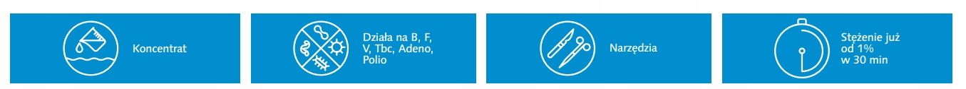 Przygotować roztwór użytkowy koncentratu poprzez rozcieńczenie z wodą w odpowiedniej proporcji. Wybór stężenia zależy od pożądanego spektrum i czasu działania. W celu otrzymania stężenia 1% należy 10 ml koncentratu rozpuścić w 990 ml wody. Instrumenty bezpośrednio po użyciu zanurzyć w roztworze. Wszystkie części i otwory muszą być całkowicie wypełnione roztworem. Po dezynfekcji, instrument wypłukać i wysuszyć. Ze względów higienicznych zaleca się codzienną wymianę roztworu. Nie łączyć z innymi środkami czyszczącymi lub dezynfekującymi. Wyrób przeznaczony do zastosowania przez profesjonalnego użytkownika.